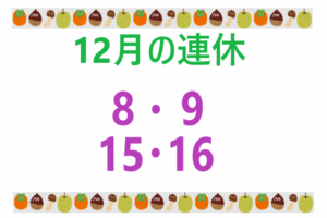 12月の定休日は 4日 11日 12日 18日 19日 25日 です。